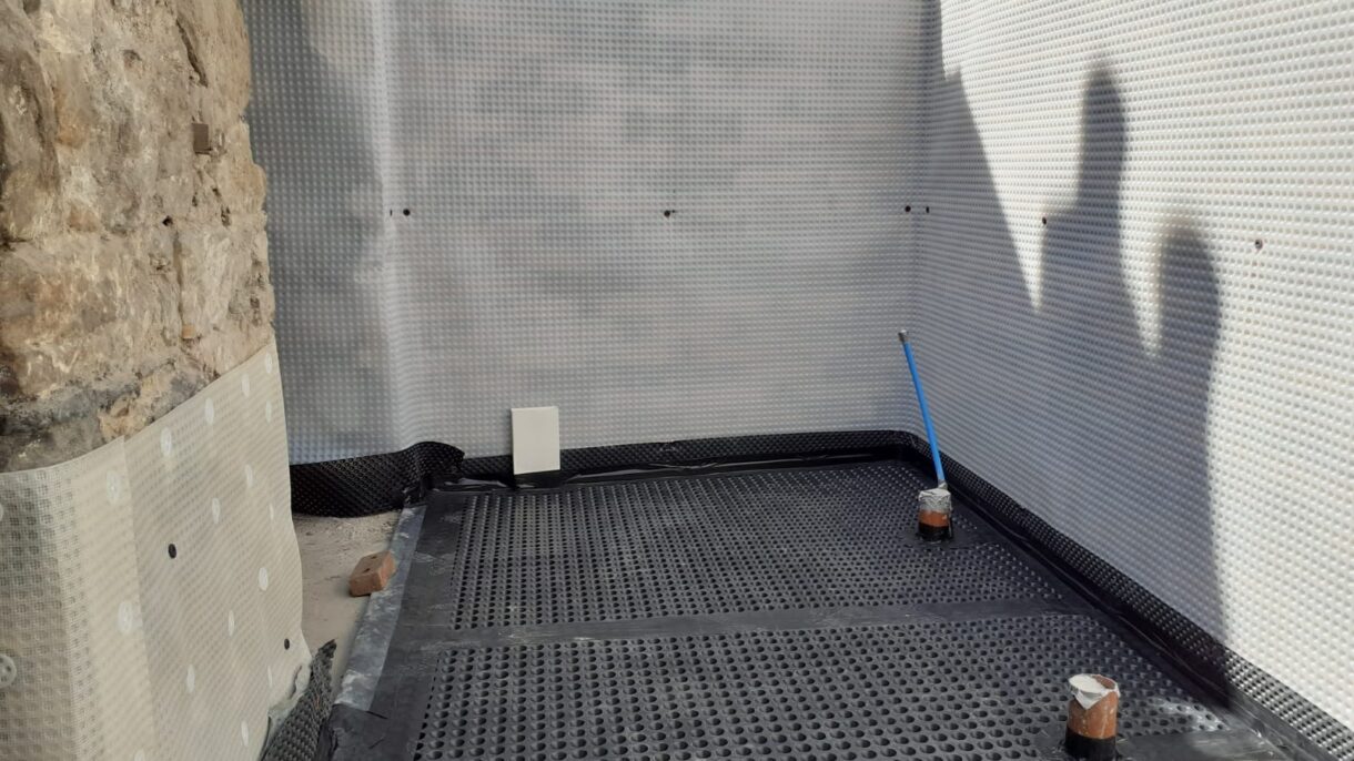 Type C waterproofing, or drained protection, is a system designed to allow water to enter the structure but then channel it away before it can cause damage. This method involves the installation of a cavity drainage system along the walls and floor, which directs incoming water to a drainage system and sump pump for removal. Type C waterproofing is highly adaptable and can be used in both new builds and existing structures, offering a reliable solution for managing water ingress without the need for extensive excavation or external access.