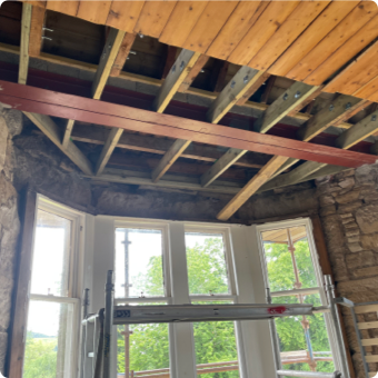 A business contacted us from Aberfeldy whose unique and impressive property had succumbed to water ingress, causing large areas of fungal decay and extensive dry rot fruiting bodies. We were tasked with surveying the property and identifying the source of the issue and the damage it may have already caused.